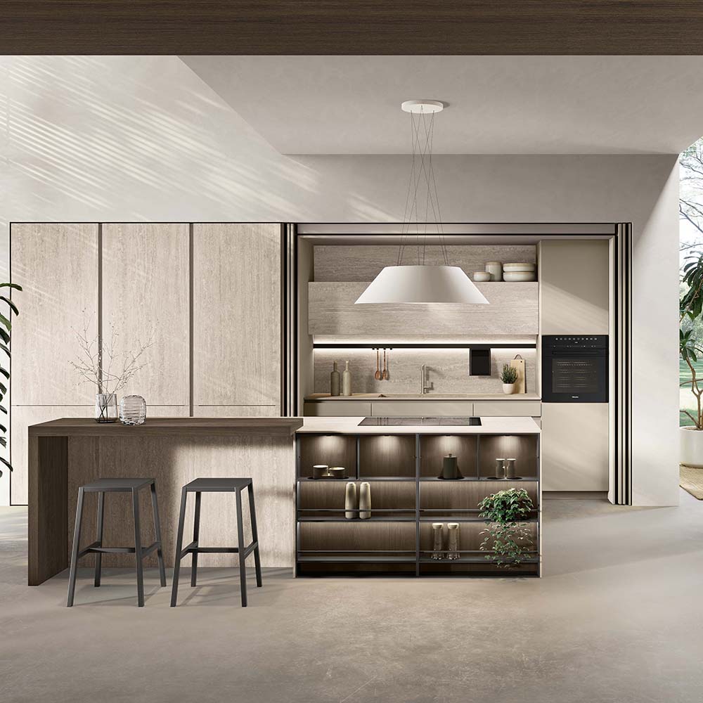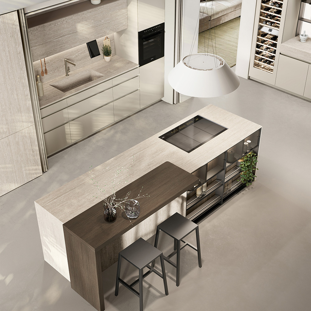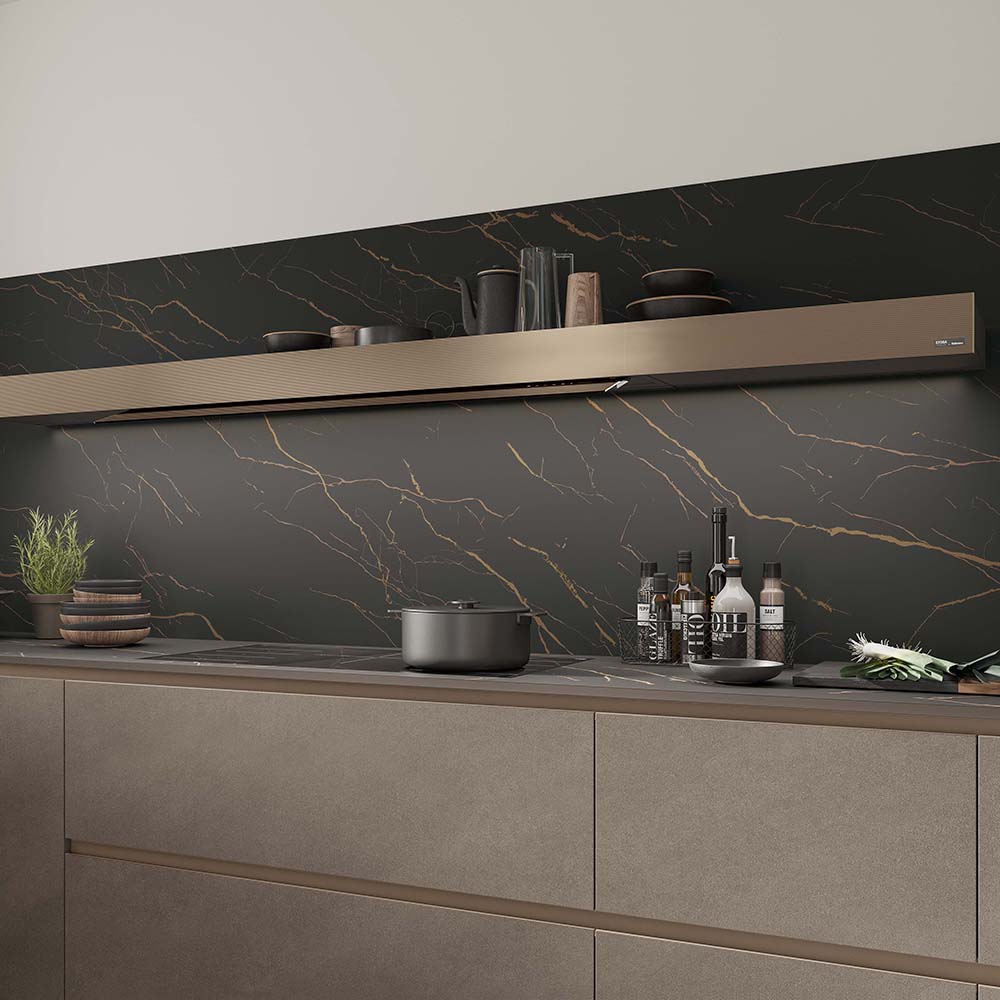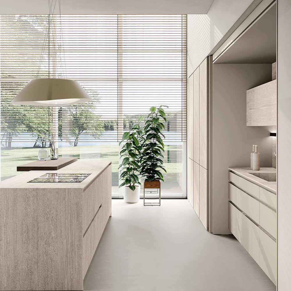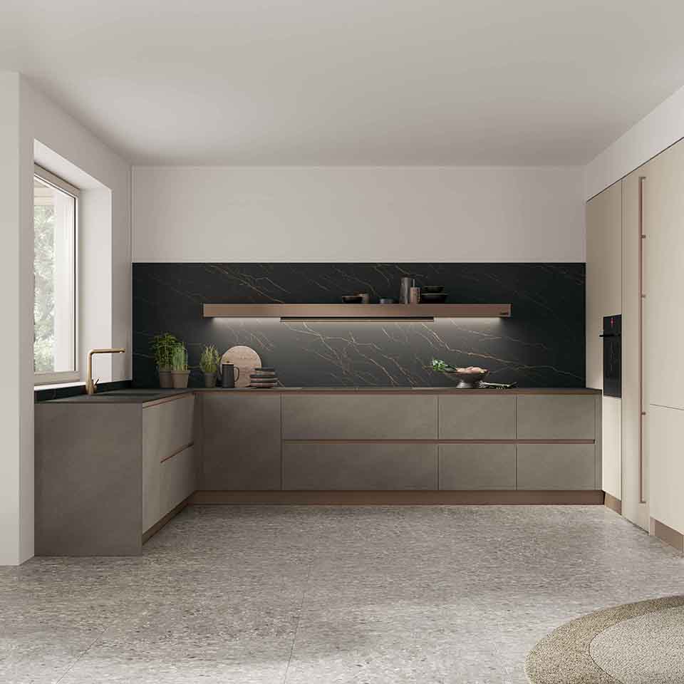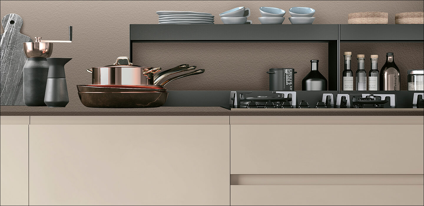 Il nostro HPL nasce da strati di laminato, trattati con speciali resine che lo rendono estremamente compatto e resistente. Il risultato è un materiale solido, affidabile e sicuro, progettato per durare nel tempo. Grazie al processo produttivo avanzato, il pannello raggiunge un’elevata densità e stabilità, con emissioni di formaldeide ampiamente al di sotto dei limiti previsti dalle normative europee. La superficie viene completata con un foglio decorativo di alta qualità, conforme alle norme EN 438 e ISO 4586, per garantire non solo performance tecniche eccellenti, ma anche un’estetica curata e duratura. La superfice risulta piacevolissima da toccare regalando tutta la bellezza del design senza lo stress della manutenzione. Decorazioni e pattern conferiscono un tocco di stile che rende la cucina un luogo da abitare in totale libertà, dove l’estetica si sposa finalmente con la praticità.